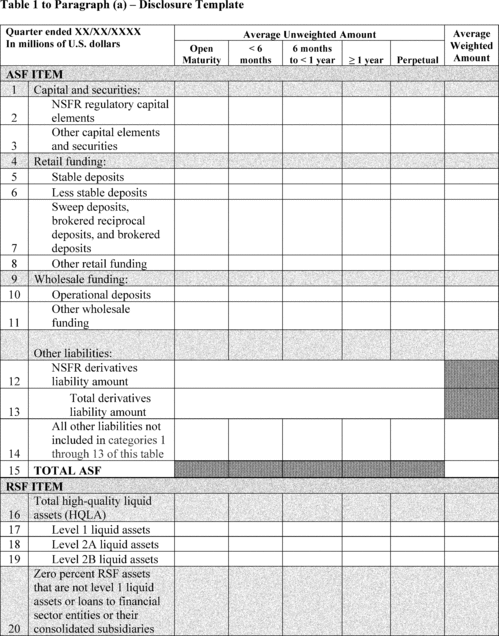(a) General. A covered depository institution holding company, U.S. intermediate holding company, or covered nonbank company must publicly disclose the information required by this subpart in the format provided in Table 1 to this paragraph: