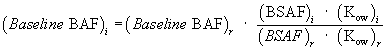 E. Calculation of a Baseline BAF from a Field-Measured BSAF. 1. A baseline BAF for organic chemical “i” shall be calculated from a field-measured BSAF of acceptable quality using the following equation: