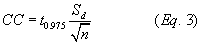 2.1.7.3 Confidence Coefficient (CC). Calculate the 2.5 percent error CC (one-tailed) using Equation 3.