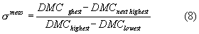 The “Q-test” is used to determine if a data point can be rejected. The difference between the questionable result and its neighbor is divided by the spread of the entire data set. The resulting ratio, Qmeas, is then compared with rejection values that are critical for a particular degree of confidence, where Qmeas is: