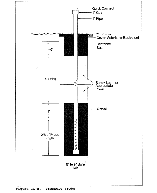 11.5.3.1 Prepare the directional probe and differential pressure gauges as recommended by the manufacturer. Capillary tubing or surge tanks may be used to dampen pressure fluctuations. It is recommended, but not required, that a pretest leak check be conducted. To perform a leak check, pressurize or use suction on the impact opening until a reading of at least 7.6 cm (3 in.) H2O registers on the differential pressure gauge, then plug the impact opening. The pressure of a leak-free system will remain stable for at least 15 seconds.
