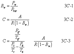 Bw = Moisture content in the sample, fraction. CN2 = Measured N2 concentration (by Method 3C), fraction. CN2Corr = Measured N2 concentration corrected only for dilution, fraction. Ct = Calculated NMOC concentration, ppmv C equivalent. Ctm = Measured NMOC concentration, ppmv C equivalent. Pb = Barometric pressure, mm Hg. Pt = Gas sample tank pressure after sampling, but before pressurizing, mm Hg absolute. Ptf = Final gas sample tank pressure after pressurizing, mm Hg absolute. Pti = Gas sample tank pressure after evacuation, mm Hg absolute. Pw = Vapor pressure of H2O (from Table 25C-1), mm Hg. r = Total number of analyzer injections of sample tank during analysis (where j = injection number, 1 . . . r). R = Mean calibration response factor for specific sample component, area/ppm. Tt = Sample tank temperature at completion of sampling, °K. Tti = Sample tank temperature before sampling, °K. Ttf = Sample tank temperature after pressurizing, °K.7.2 Concentration of Sample Components. Calculate C for each compound using Equations 3C-1 and 3C-2. Use the temperature and barometric pressure at the sampling site to calculate Bw. If the sample was diluted with helium using the procedures in Method 25C, use Equation 3C-3 to calculate the concentration.