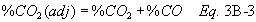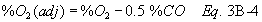 If CO is present in quantities measurable by this method, adjust the O2 and CO2 values using Equations 3B-3 and 3B-4 before performing the calculation for Fo: