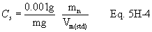 Vwsg(std) = Volume of water vapor collected in silica gel, corrected to standard conditions, scm (scf).