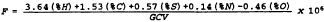 3.3.5 F, Fc = a factor representing a ratio of the volume of dry flue gases generated to the caloric value of the fuel combusted (F), and a factor representing a ratio of the volume of CO2 generated to the calorific value of the fuel combusted (Fc), respectively. Table 1 lists the values of F and Fc for different fuels.