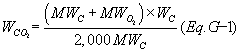 WNCO2 = .99 WCO2(Eq. G-3) where, WNCO2 = Net CO2 mass emissions from the combustion of coal discharged to the atmosphere, tons/day. .99 = Average fraction of coal converted into CO2 upon combustion. WCO2 = Daily CO2 mass emissions from the combustion of coal calculated by equation G-1, tons/day.2.3 In lieu of using the procedures, methods, and equations in section 2.1 of this appendix, the owner or operator of an affected gas-fired or oil-fired unit (as defined under § 72.2 of this chapter) may use the following equation and records of hourly heat input to estimate hourly CO2 mass emissions (in tons).