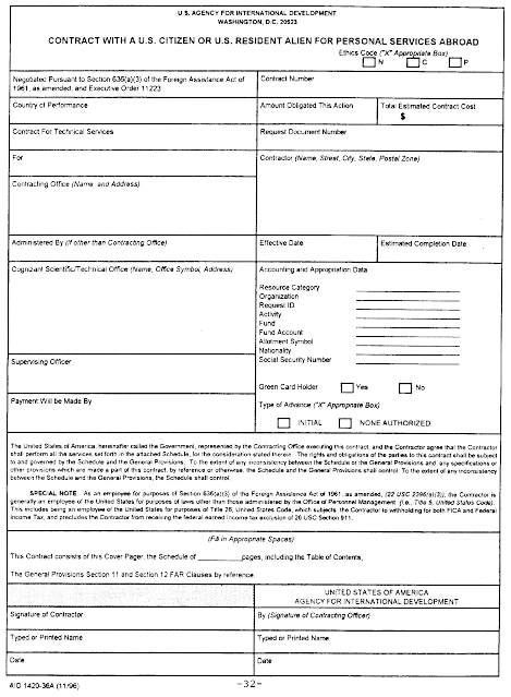 1. General. (a) Purpose. This appendix sets forth the authority, policy, and procedures under which USAID contracts with a U.S. citizen or U.S. resident alien for personal services abroad.